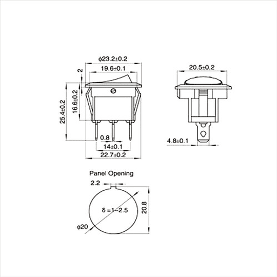 3 X Interruptor ON/OFF 20mm, 250V, 10A (Seleccione Color en Menú) Características: Modelo : KCD1-105 Corriente Max: 10A 250V AC / 6A 125V AC (Carga...
