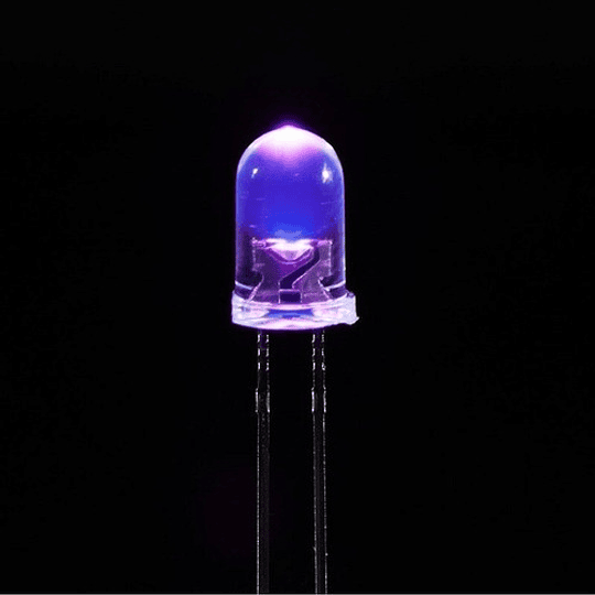 Pack de 10 Un Led Ultra Violeta 5mm, 390nm, Luz Negra Características: Lente: 5 mm de diámetro / transparente / redondo Emisión de color: Púrpura ...